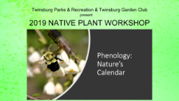 - Twinsburg Native Habitat Workshop: Plant By Numbers: Protecting Pollinators One Garden at a Time.